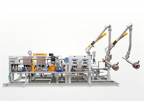 油品定量裝車橇裝組是指將每一個裝車鶴位內的儀表和設備集成在一個專用的框架結構內,儀表和設備包括裝車鶴管、流量計、防溢油靜電報警控制器、壓力變送器、裝車流量控制閥、緊急切斷閥,裝車泵、批量控制器等, 只預留工藝連接口和控制電源和通訊接口,這個整體集成部分稱為裝車橇。與傳統(tǒng)的裝車控制系統(tǒng)就地組裝比較,裝車橇可以節(jié)省現(xiàn)場設計和現(xiàn)場施工量,縮短項目工期,提高裝車控制系統(tǒng)的質量。